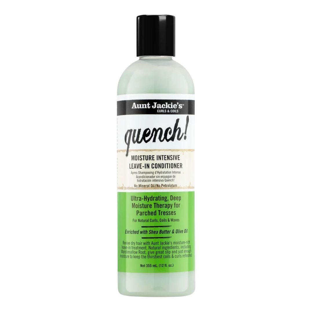 Aunt Jackie’s Quench Moisture Intensive Leave-In Conditioner is een intens hydraterende en verzachtende leave-in die droog, dorstig haar direct voedt en soepel maakt, zonder build-up of verzwaring. De crèmeachtige formule dringt diep door in de haarvezel en helpt bij het herstellen van de vochtbalans, het verminderen van pluis en het verbeteren van de doorkambaarheid.